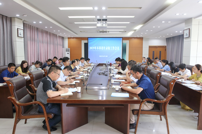 7月2日上午,我校2019年本科招生录取工作会议在文渊楼二楼会议室召开。副校长金芙蓉出席会议并讲话,校长办公室、纪委办公室、财务处、教务处、学生工作处、信息化处、后勤管理处(饮食服务总公司)、保卫处负责人,招生与就业处全体人员、各二级学院副书记参加会议。