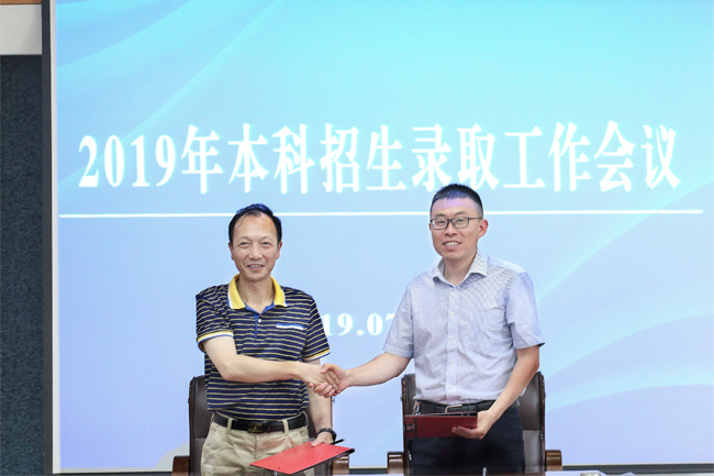 汤洪涛代表学校招生主管部门与全体录取人员签订了承诺书。录取工作人员将严格遵循招生工作“六不准”及录取工作“十条禁令”,恪尽职守、廉洁招生,确保我校2019年招生录取工作顺利完成。