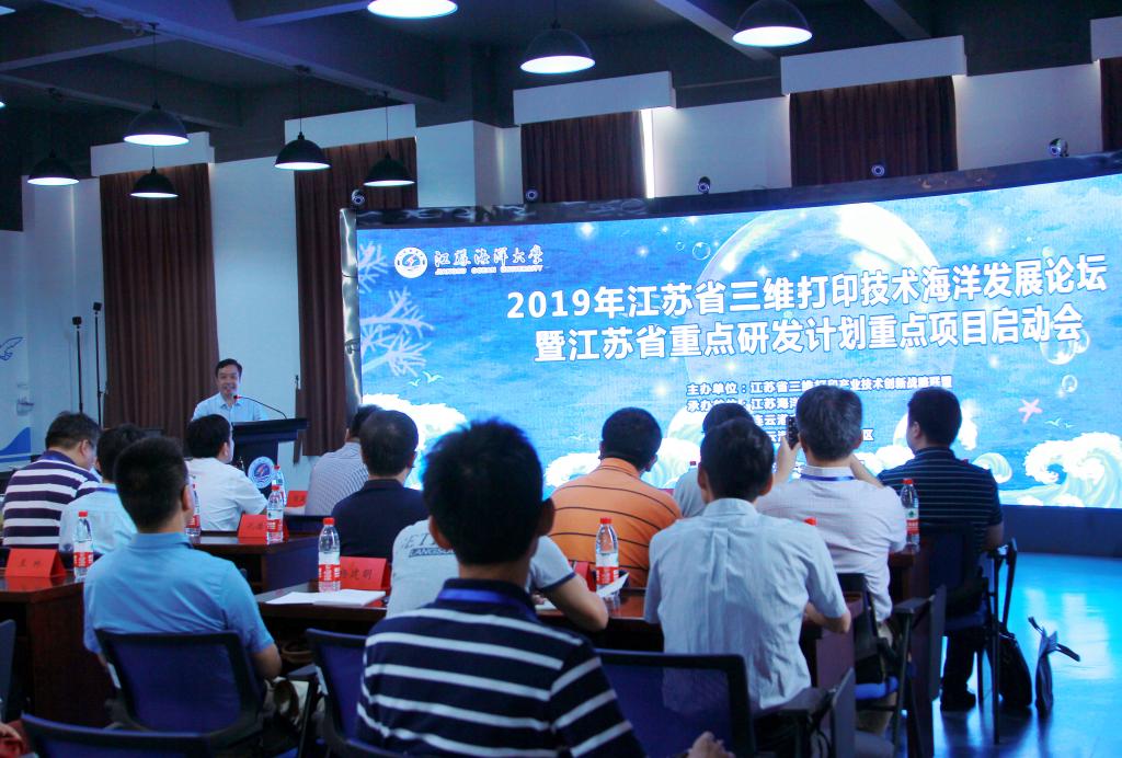 7月6日,2019年江苏省三维打印技术海洋发展论坛暨江苏省重点研发计划重点项目启动会在我校虚拟现实VR教学中心隆重举行。副校长许兴友、省三维打印产业技术创新战略联盟副理事长田宗军、省生产力促进中心产业规划与军民协同创新服务处处长陈量、省产业技术研究院战略规划与业务管理部部长王霄、市高新区管委会副主任商显福以及来自南京大学、南京航空航天大学、南京师范大学等高校的专家学者50余人参会。