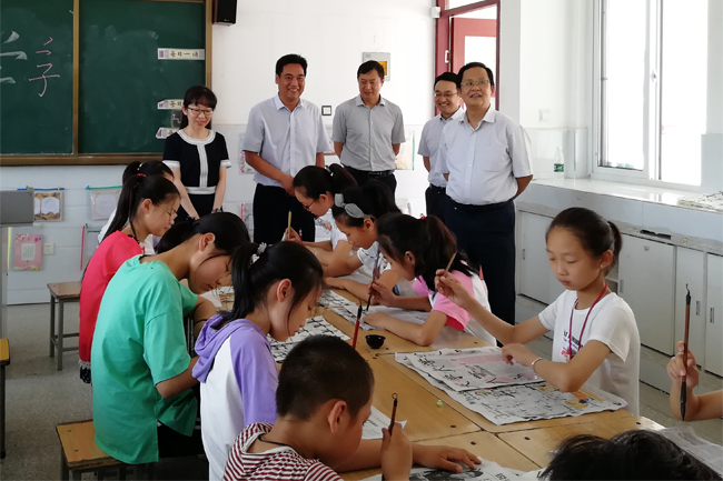 金芙蓉观看了支教实践团队的书法、京剧等课程的现场教学,与参加支教活动的留守儿童亲切交谈,鼓励小朋友们好好学习,并询问了支教队员的课程安排和教学进度,提醒同学们注意人身安全。随后,金芙蓉一行在塔山中心小学校长林杰的陪同下,参观了塔山中心小学的校园环境,观看了支教文艺汇演的节目彩排和支教团队的食宿环境。金芙蓉称赞了支教队员们不怕吃苦、乐于奉献的志愿服务精神,也对同学们提出殷切期望。她希望大家不断创新实践形式、改进实践内容、强化实践效果,在成长成才的同时服务好地方经济社会发展,充分展示江苏海洋大学学生团结拼搏、敢于担当的精神风貌。