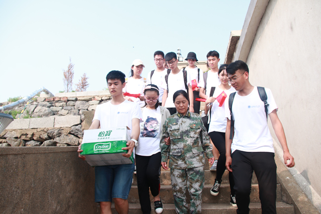 为了深入学习王继才先进事迹,弘扬爱国奉献精神,激励学生做新时代奋斗者,7月13日,双方31名师生在王仕花等守岛同志的带领下登上开山岛,开展爱国主义教育社会实践活动。
