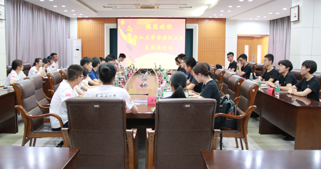7月12日,浙江大学国旗仪仗队来访我校,并与我校国旗仪仗队进行交流。学生工作处处长朱国军、副处长陈德翼,浙江大学国旗仪仗队指导老师罗殷,以及双方30名队员参加交流座谈。