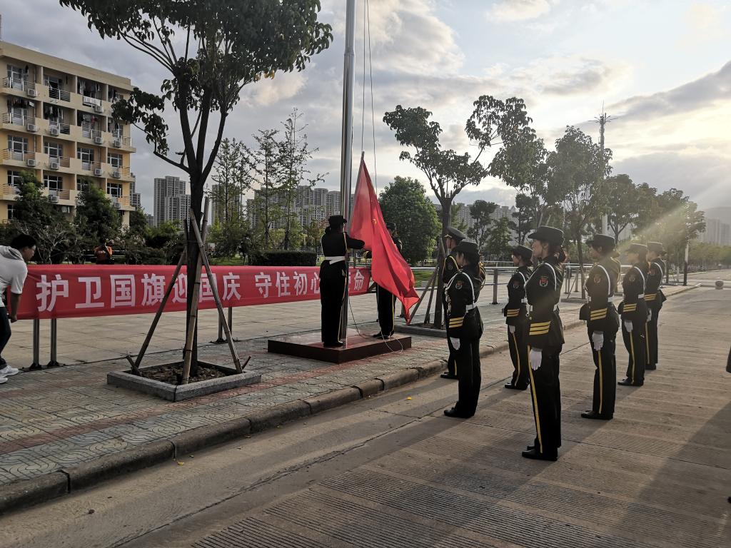 七月流火,八月未央。8月26日清晨,机械与海洋工程学院在苍梧校区举行“护卫国旗迎国庆、守住初心记使命”主题升旗仪式。学院党政领导陈书法、张元良、赵求勇、于雪梅、贺毅强,辅导员及全体学生参加了此次升旗仪式。