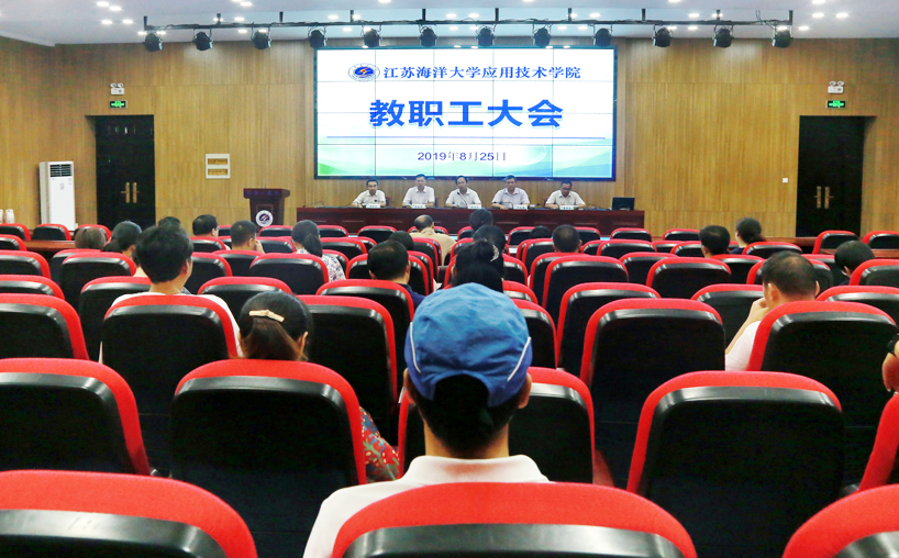 8月25日,应用技术学院在敦行楼报告厅举行新学期教职工大会,传达校中层干部会议精神,总结上学期工作,部署新学期重点任务,推动转型发展再出发。应用技术学院党委书记周清华,院长丁兆奎,党委副书记万金店,副院长李明金、隋福利及全院教职工参加会议。会议由周清华主持。
