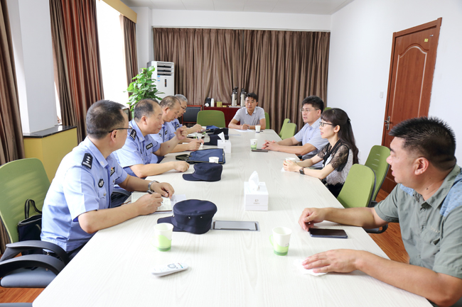 8月27日上午,连云港市高新区公安分局局长高剑波、副局长徐强一行来我校调研安全稳定工作。副校长金芙蓉在行政楼四楼会议室会见了高剑波一行,保卫处相关人员参加调研会。