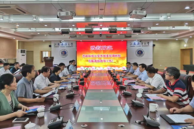 会上,许兴友对省政协致公党届别委员会调研组的到来表示欢迎,并就我校办学历史及学校更名江苏海洋大学的情况向调研组进行了详细介绍。科学技术与产业处处长申欣就我校在发挥高校科教优势,助推地方经济转型升级的具体工作情况进行了介绍,从“创新体制,提升学校科技服务能力”“引育并举,加快人才建设”“统筹优化学校专业布局,服务地方经济”等七个方面的工作举措及取得的成绩进行了汇报。海洋生命与水产学院副院长董志国、商学院副院长孙军、海洋生命与水产学院王兴强教授等人结合自身服务地方经济的经历向调研组进行了汇报,并提出了有价值的建议。