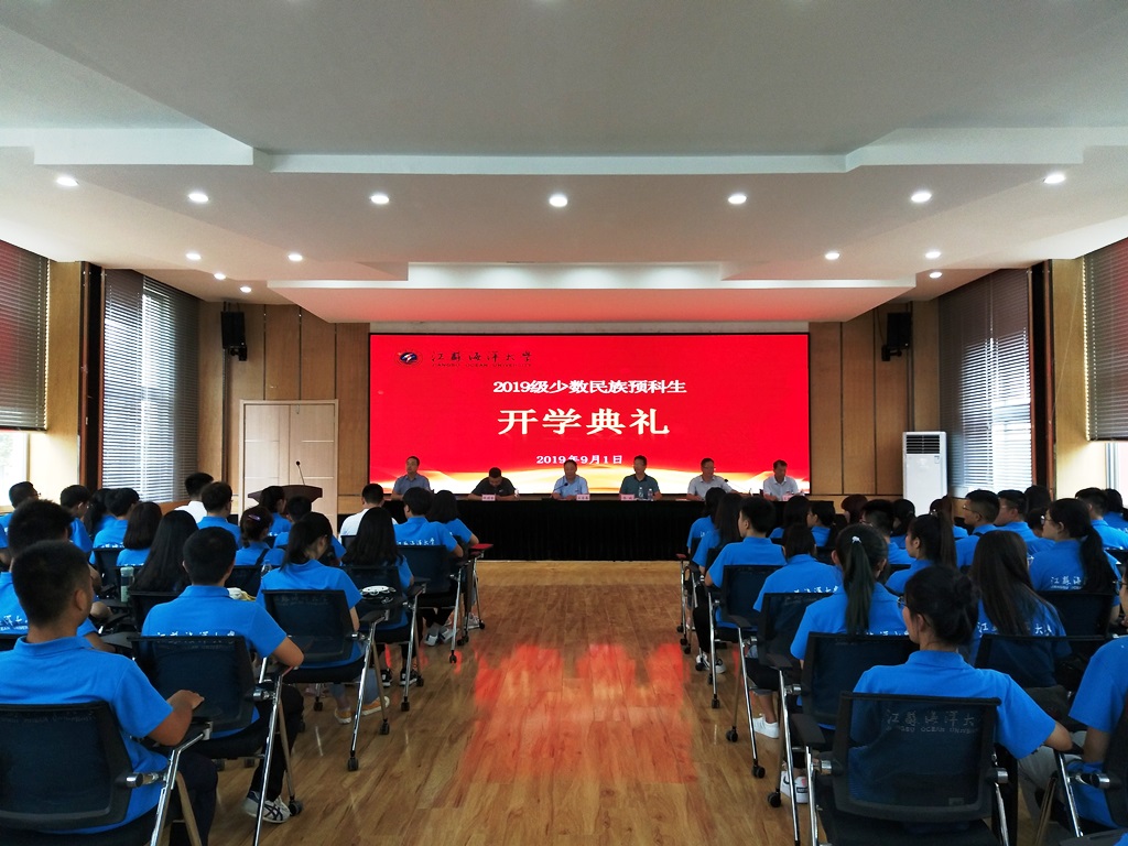 9月1日下午,江苏海洋大学2019级少数民族预科生开学典礼在通灌校区路演大厅举行。来自祖国5个省、市、自治区的93名少数民族预科生参加了开学典礼。分校区管委会主任王吉春、分校区党总支书记张振松、学生处处长朱国军、教务处处长乔斌、校团委副书记黄吉庆、分校区管委会副主任王统军等出席开学典礼,典礼仪式由王吉春主持。