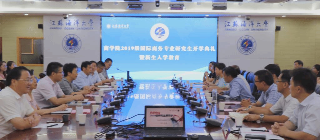 9月4日下午,商学院2019级国际商务专业研究生开学典礼暨新生入学教育在校会议中心东海厅举行。副校长许兴友、李梅英应邀出席活动,海洋经济与文化研究中心主任吴价宝、学生处处长朱国军、研究生工作部部长舒伟、商学院党委书记杨天华、院长宣昌勇以及学院全体硕士生导师和研究生同学参加了典礼。典礼由商学院副院长、副书记孙军主持。