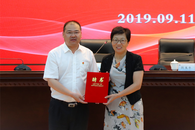 会前,举行了兼职辅导员聘任仪式,李梅英亲自颁发聘书,聘请段玉平为我校兼职辅导员。