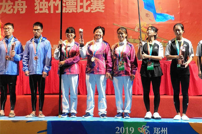 9月9日至11日,中华人民共和国第十一届少数民族传统体育运动会龙舟项目比赛在郑州北龙湖水上运动中心顺利举行。我校大学生龙舟队代表江苏省参加比赛,经过三天高频率、高强度的激烈角逐,最终在男子组12人小龙舟200米直道竞速、混合组12人小龙舟500米直道竞速、女子组22人标准龙舟800米直道竞速、女子组22人标准龙舟1000米直道竞速四个项目中获四个三等奖的好成绩。