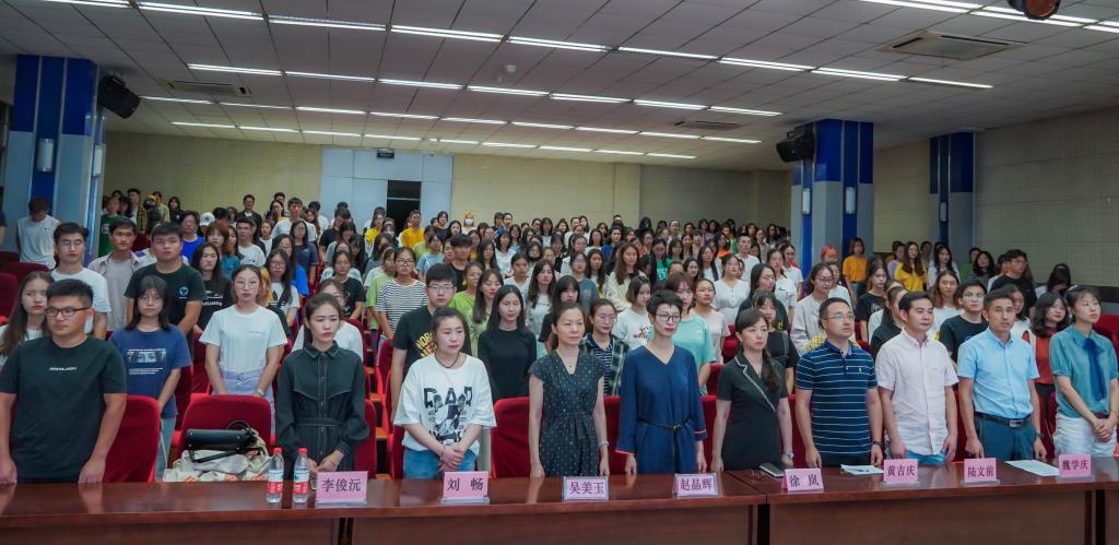 9月17日晚,外国语学院“践行新思想,拥抱新时代”2019年暑期社会实践总结暨表彰大会在苍梧校区艺术楼一楼报告厅举行。校团委副书记黄吉庆,学院党委书记徐岚、院长赵晶辉、副书记陆文前、副院长吴美玉、分团委书记魏学庆,以及社会实践基地灌云县昂立教育机构的老师、各班团学生近300人参加大会。