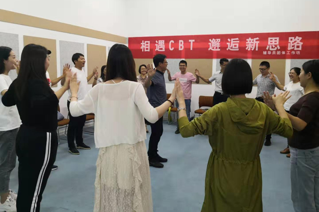 通过大组热身、亲和力建立等活动,辅导员们之间增强了沟通交流和人际支持。随后,辅导员们被随机分成3个小组,通过“穿越课堂”“脑力激荡”“思路启发”等环节回顾了在上次培训上所学的知识点,并分享讨论了CBT理论和技术对今后工作和个人情绪调整方面的所思、所悟和所用。