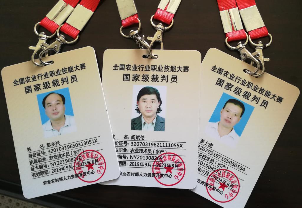 近日,根据国家农业农村部人力资源开发中心文件,我校海洋生命与水产学院阎斌伦、彭永兴、李士虎3位老师参加全国职业技能大赛国家级裁判员培训全部通过考核,取得全国农业行业职业技能大赛国家裁判员资格,纳入全国农业行业职业技能大赛裁判员库,取得《全国农业行业职业技能大赛国家级裁判员证卡》。