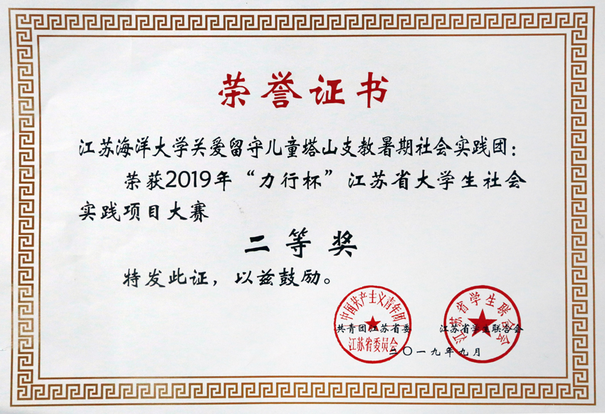 近日,由团省委主办的首届“力行杯”江苏省大学生社会实践项目大赛于江南大学举行,应用技术学院“同追梦 共成长”关爱留守儿童塔山支教暑期社会实践团队从1369支立项团队中脱颖而出,荣获二等奖。