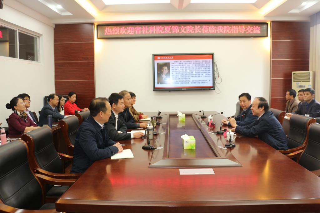 舒小平首先代表学校对夏锦文的到来表示热烈欢迎,简要介绍了夏锦文院长主要的工作经历和在法学教学研究方面取得的主要成就,并对省社会科学院和夏锦文院长长期以来对我校的关心与支持表示衷心感谢。法律与公共管理学院陈兴发教授从学院的办学历史、师资队伍、教学科研、学科建设和人才培养等方面进行了简要介绍。
