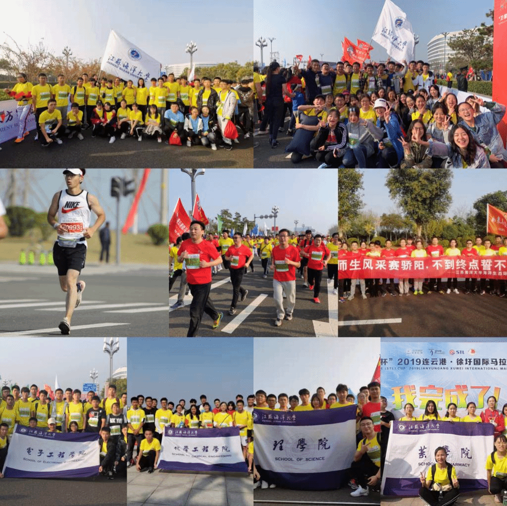 本届赛事由中国田径协会、江苏省体育局和连云港市人民政府共同主办,国家东中西区域合作示范区(连云港徐圩新区)管委会和连云港市体育局承办,江苏方洋集团有限公司、广州中体体育有限责任公司协办。本届赛事设全程马拉松(约42 km)、半程马拉松(约21 km)和迷你马拉松(约6km)3个项目,参赛规模为1.5万多人,3个项目我校都有师生参赛。其中,理学院旗手第三个冲过了迷你马拉松终点,并接受了连云港电视台的采访;我校还有多名选手在2小时内完成了半程马拉松比赛。