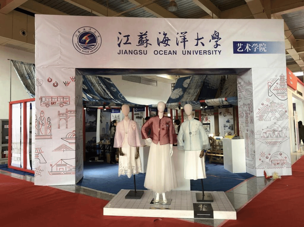 整个展区,不仅有精美的陶艺作品、清新素雅的蓝染作品、别致精巧的皮制品,还有数字媒体艺术专业带来的精彩动画、环境设计专业带来的连云港地域文化景观设计展示,让人目不暇接,欣喜忘返。