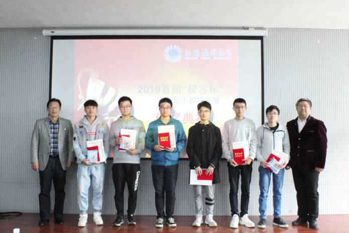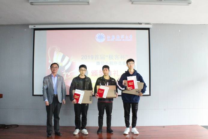 10月30日下午,由教务处主办的2019首届“极客杯”微信小程序设计竞赛颁奖典礼在图书馆302多功能厅成功举行。副校长严云洋应邀出席颁奖典礼,同时出席的有协办方代表、教务处、计算机工程学院、应用技术学院以及理学院相关领导。此外,参与此次竞赛活动的信息与计算科学系部分教师、获奖同学参加了颁奖典礼。颁奖典礼由理学院副院长黄增光主持。