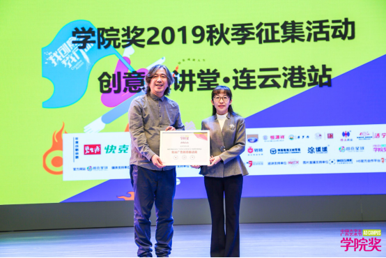 随后,学院奖组委会评审秘书长、广告人学院副院长赵世勇上台为江苏海洋大学颁发“年度广告教育推动奖”,并代表组委会对所有到场的院校领导、企业代表及学生表示了真挚的感谢,希望学院奖能与江苏海洋大学有一个美好的开始,一起携手共同进步,并祝愿同学们取得理想的成绩。