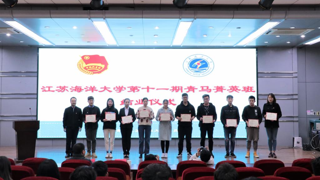 11月13日下午,江苏海洋大学第十一期大学生青马菁英班结业仪式在艺术楼报告厅举行。校团委副书记黄吉庆、朱小明,组宣部副部长周小晓出席本次活动。结业仪式由艺术教育中心副主任郭戈主持,第十一期青马菁英班全体学员参加结业仪式。