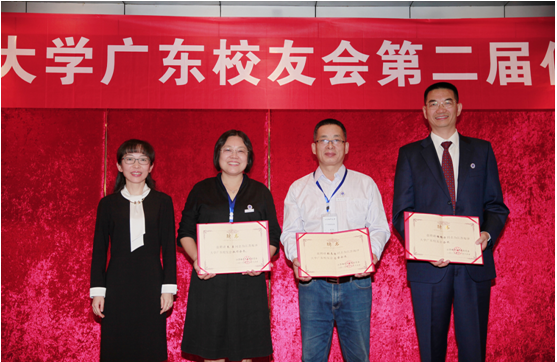 副校长金芙蓉,校友总会副会长刘平昌、副会长兼秘书长孙盛杰为广东校友会授旗、颁牌、颁发聘书;大会还表彰了优秀校友会工作者;贵州校友会会长罗贵川代表兄弟校友会对此次会议的成功召开表示祝贺;山东校友会、扬州校友会、南京校友会向广东校友会赠送了礼品。