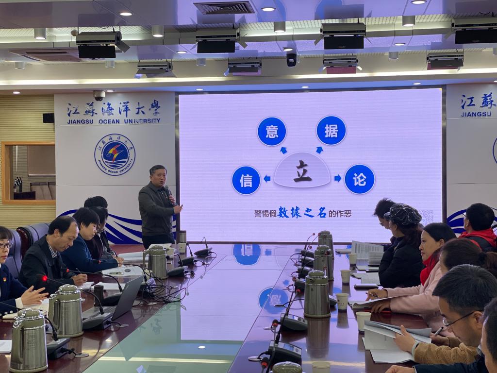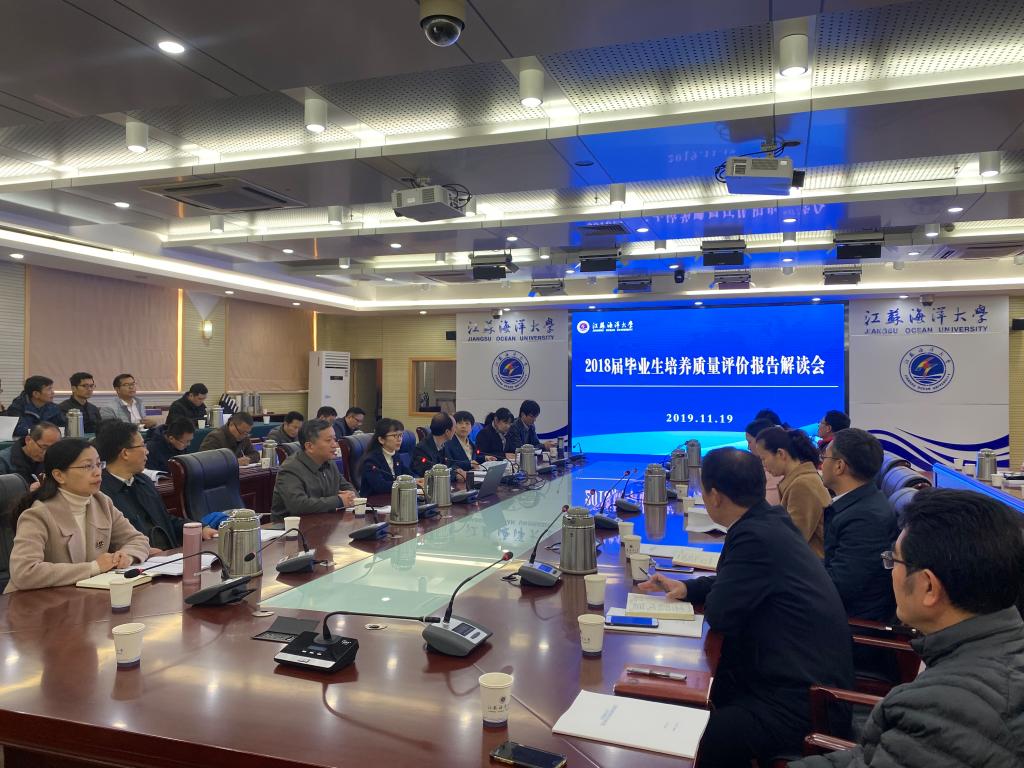 11月19日上午,我校在会议中心东海厅召开《江苏海洋大学2018届毕业生培养质量评价报告》解读会,特邀江苏省招生就业指导服务中心副主任蒋晨阳对报告进行深度解读。副校长金芙蓉出席会议,招生与就业处处长汤洪涛主持报告会,各二级单位党组织副书记、分管教学副院长、负责就业工作辅导员、教学科研办主任,招生与就业处、学生处、教务处、教学质量处、后勤处中层干部听取了报告。