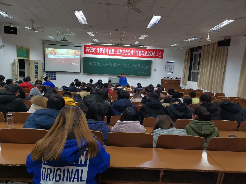 12月4日,天气寒冷,距离2020年全国硕士研究生考试仅剩16天,药学院在苍梧校区主楼102举行2020届考研冲刺动员暨慰问指导会。药学院院长助理李海南、药学院优秀研究生宓宇为研途路上正在冲刺阶段的学子提出考研复习建议,鼓舞考生士气。药学院全体辅导员、近百名考研学生参加了本次考研大会。
