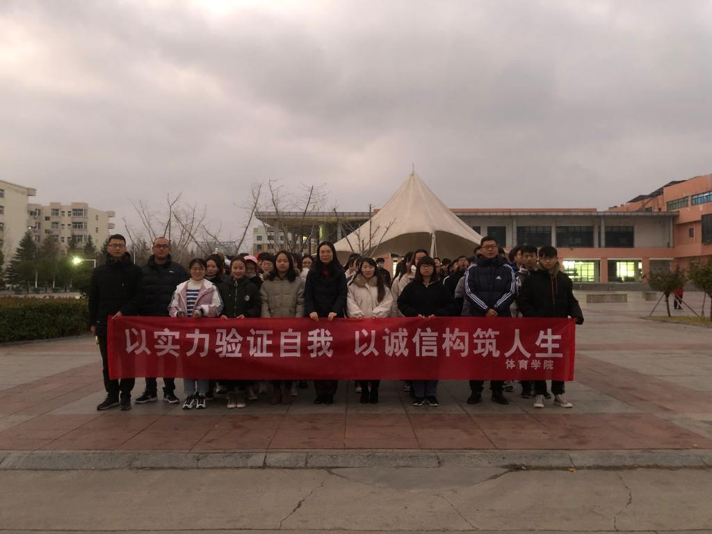 12月16日,体育学院在苍梧校区四食堂广场举行“以实力验证自我,以诚信构筑人生”主题升旗仪式,体育学院辅导员、班主任以及全院学生参加了本次活动。升旗仪式由辅导员仝友鹏主持。