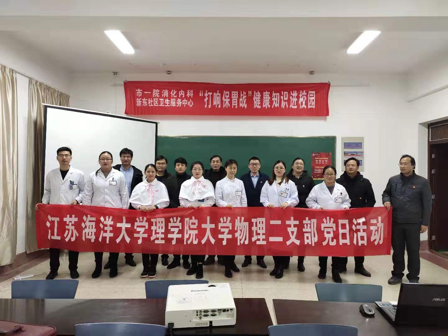 12月20日下午,由“连云港市第一人民医院新东社区卫生服务中心内科支部消化小组”与“理学院大学物理党组二支部”共同举办“胃”雨绸缪“肠”治久安,“打响保胃战”健康知识讲座在定海楼会议室举行。本次活动由理学院副书记倪军主持,连云港市第一人民医院李守英博士做“如何治疗胃食管反流病”主题报告。