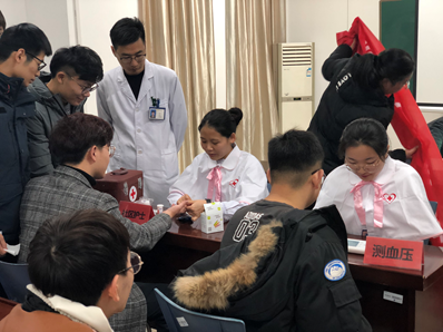 讲座之后,师生们热情高涨,积极与医生们进行交流。在此期间新东社区卫生服务中心的医生们认真的为在场的师生进行义诊,为大家测量了血压和血糖。通过本次活动,两个党支部之间建立了友好的关系,为两党支部今后进一步合作交流打下了坚实的基础。