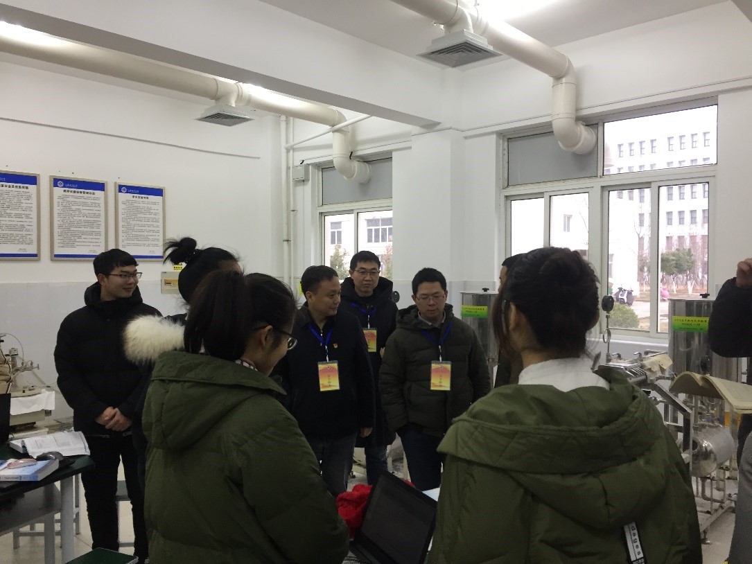 张明星一行还来到化工原理实验室,看望了寒假留校参加全国大学生化工设计竞赛的学生,仔细询问了同学们的竞赛准备情况、赛程进度以及比赛中可能存在的问题,同时也表扬了同学们的实践创新精神,鼓励参赛人员认真准备并送上了赛前祝福。