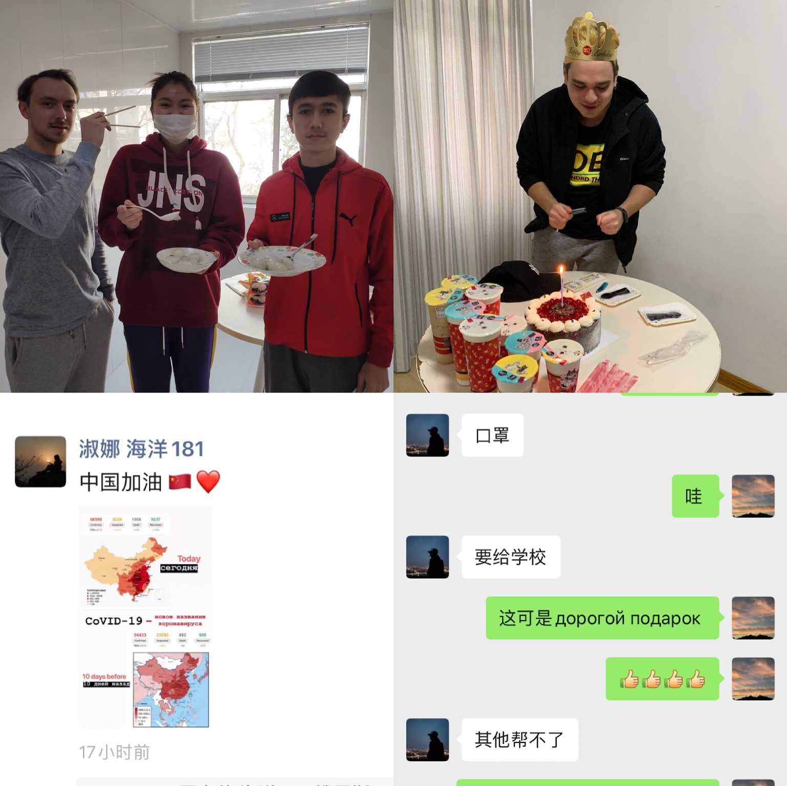 针对假期留校外籍师生文化差异大、流动情况复杂等情况,国际交流与合作处在全面掌握具体信息的基础上,在思想上,努力做好疫情防控工作的心理咨询和辅导,果断实施部门工作人员和辅导员留学生宿舍值班制度,全方位稳定留学生在疫情防控中因国内外信息混杂而带来的恐惧心理;在学习上,为留学生开展了线上汉语教学,保障学习资源,引导留学生关注自身学业,努力提升专业水平;在生活上,为留学生每日准备水果、送上生日祝福、组织元宵节在线猜灯谜赢小礼物活动等,一系列的举措使留学生切身感知中华传统节日文化的同时也建立了乐观平和、积极向上的良好心态,赢得了留校外籍师生的理解和赞誉。此外,已回国的留学生纷纷对学校的帮助表达感谢和祝福,更有留学生心系学校,在本国筹集医用口罩,准备捐献给学校和医院等。