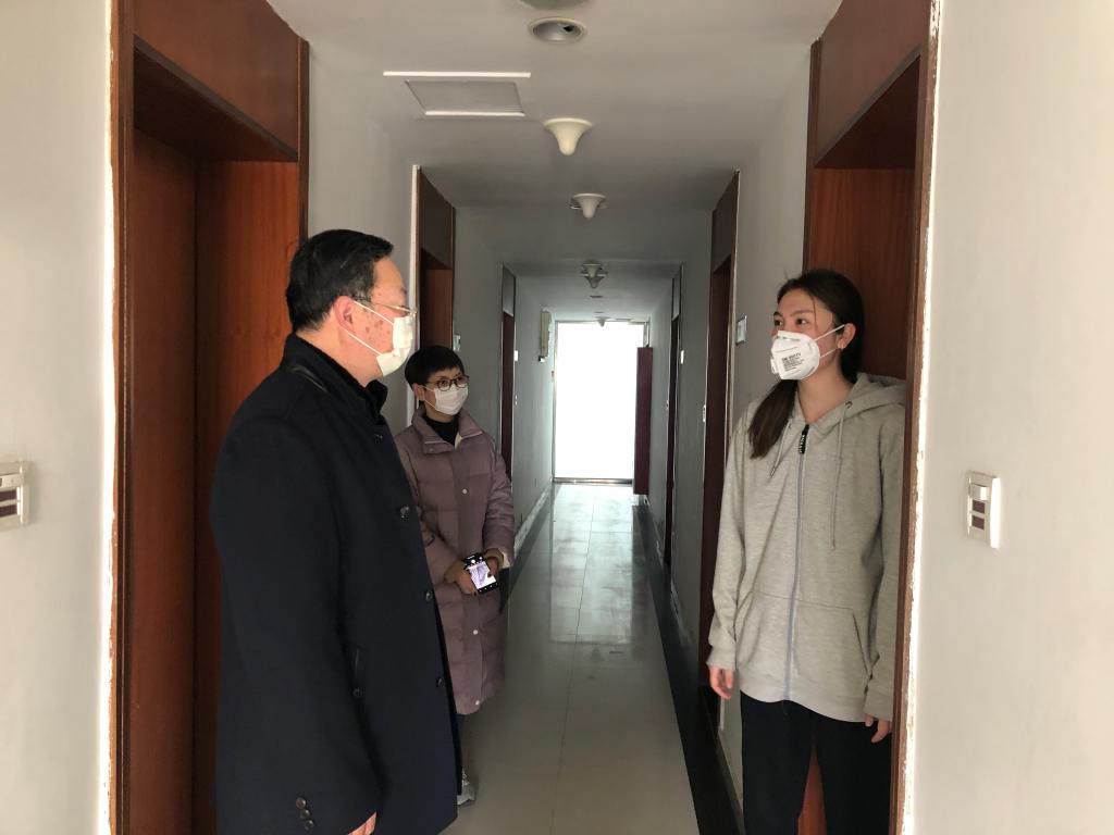对于留校留学生的防疫工作,校领导给予高度重视,假期期间多次到留学生宿舍看望留学生,详细询问留学生同学们的生活近况,叮嘱同学们做好个人防护工作,积极配合学校工作,鼓励同学们努力克服眼下的困难,相信在全校师生的共同努力下,一定能打赢这场疫情防控阻击战。此外,连云港市外事办公室相关领导也到校调研疫情防控相关工作,详细了解学校在外籍教师、留学生以及寒假期间出访项目等方面防控工作具体开展情况,并走访了外教公寓和留学生宿舍,对学校应对疫情防控的一系列积极举措表示肯定。