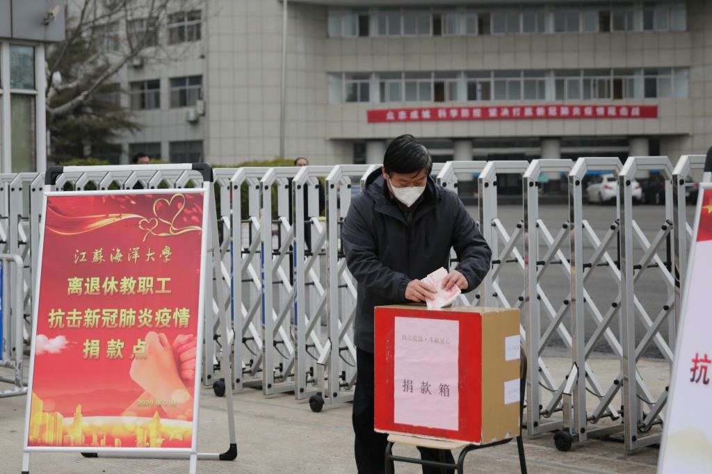 3月1日上午,考虑到老同志的特殊情况,经学校批准,离退休党工委在苍梧校区1号门门口设立江苏海洋大学离退休人员抗击新冠肺炎疫情捐款点,提前通知老同志们戴好口罩、保持适当距离,依次到捐款点捐款。捐款现场中,有多位离休干部、退休党员分别捐款5000元,有的退休老教授身体不好依然到现场捐款;有的老同志克服家中负担重的困难积极捐款,有的老同志将家中全部现金拿出来捐……老同志们纷纷表示“国家有危难,我们不能在一线像医务人员一样奋战,在后方为疫情防控尽微薄之力,是我们义不容辞的责任”“非常时期,我想为大家做点事”等等,质朴的语言体现着我们海洋大学离退休教职工的大爱与担当。