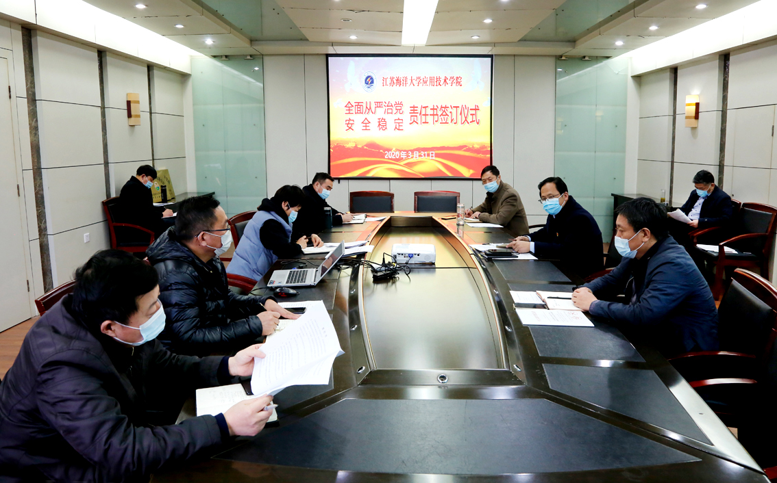 为深入贯彻落实新时代党的建设总要求,营造风清气正的政治生态,切实维护校园安全稳定,3月31日下午,应用技术学院在行政楼会议室举办全面从严治党暨安全稳定工作责任书签订仪式。应用技术学院党委书记周清华、院长丁兆奎、党委副书记万金店,副院长李明金、隋福利,全体党支部书记、科办负责人参加会议。