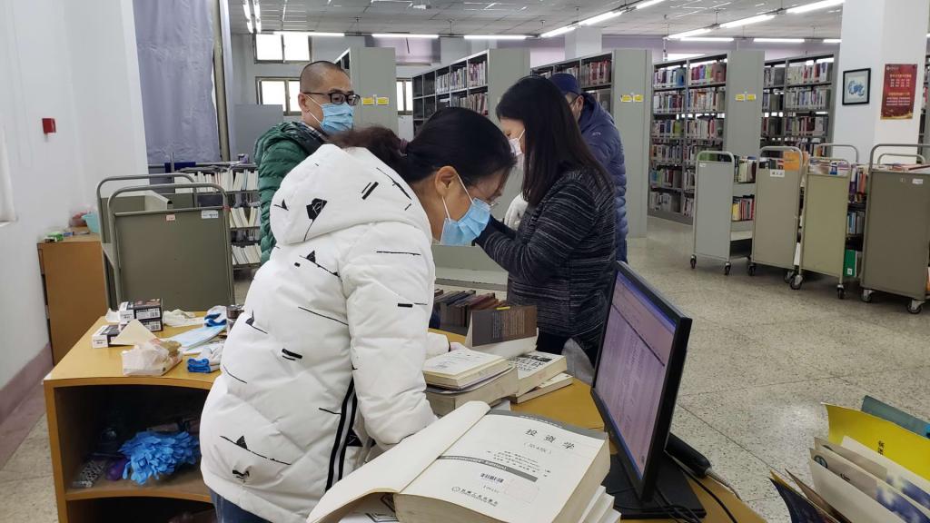 疫情即将过去,开学即将到来。为了更好地满足开学后广大师生学习工作的阅读需要,从3月30日起,图书馆读者工作部教职工全力以赴开展了50000册图书的下架、调拨、整理、上架、排序工作。她们通力配合,并肩作战,他们面对堆积如山的图书,团结一致、分工明确,在书海里进行着下架,传递,装车,分类排序,上架、安放书立等繁琐的工作。