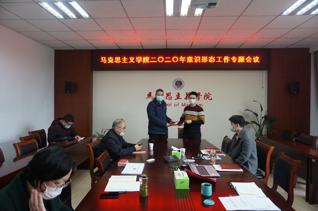 4月2日上午,马克思主义学院召开二〇二〇年意识形态工作专题会议,研究部署新一年的意识形态工作。马克思主义学院党总支书记张学武主持会议,党总支委员、教工党支部书记及各教研室主任参加会议。