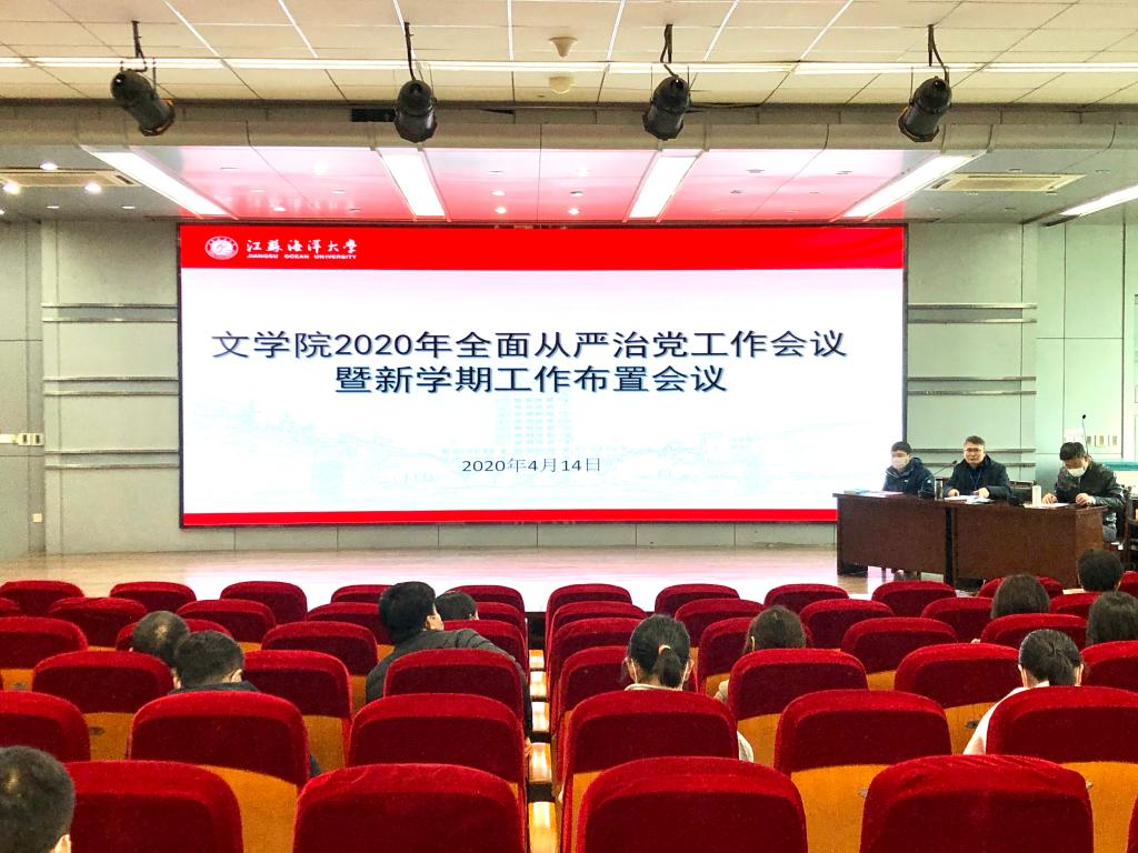 4月14日下午,文学院2020年全面从严治党工作会议暨新学期工作布置会在艺术楼报告厅召开。会议由院长吴明忠主持,院党委副书记田德勇、副院长唐浩和全体教职工参加会议。