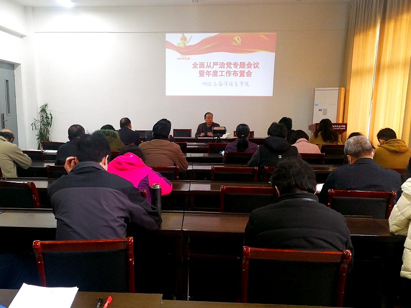 4月8日,学院召开全面从严治党工作会议暨年度工作布置会。院长焦明连为全院教职工解读了《江苏海洋大学事业发展规划纲要》(2020-2025年),结合学院2020年度党政工作要点对主要目标任务进行布置。会上,党委书记冯凤麟和院长焦明连分别与班子副职、党支部书记、党员系主任和部门负责人签订了全面从严治党责任书,非党员负责人递交了廉政建设承诺书,层层压实全面从严治党责任。