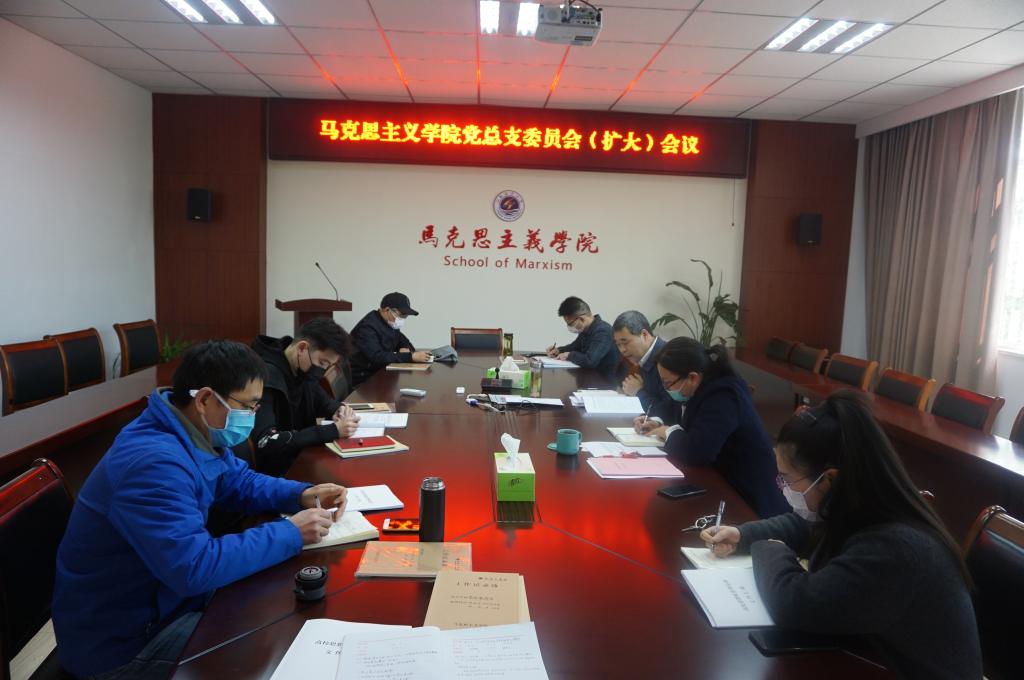 4月24日上午,马克思主义学院召开党总支委员会(扩大)会议布置自查自纠工作,学院党总支委员会委员、各党支部书记、各教研室主任参加会议,会议由党总支书记张学武主持。