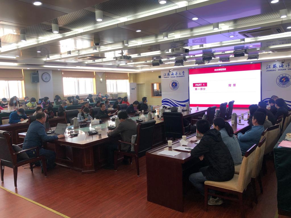 黄大志从学习《习近平在全国高校思想政治工作会议上的讲话》谈起,结合近年来教育部出台的一系列涉及到课程思政的文件,介绍了课程思政从提出到实施的发展过程。并重点解读了学校出台的《中共江苏海洋大学委员会关于全面推进课程思政建设的意见》和《中共江苏海洋大学委员会关于印发江苏海洋大学2020年推进课程思政建设工作方案的通知》。报告中,黄大志从课程思政与思政课程的比较以及课程思政的内涵、外延等方面回答了“什么是课程思政”。并结合兄弟院校和本学院部分教师开展课程思政的经验,从收集素材、教学设计、过程实施、效果评价和持续改进等五个方面谈了怎样开展课程思政建设工作。