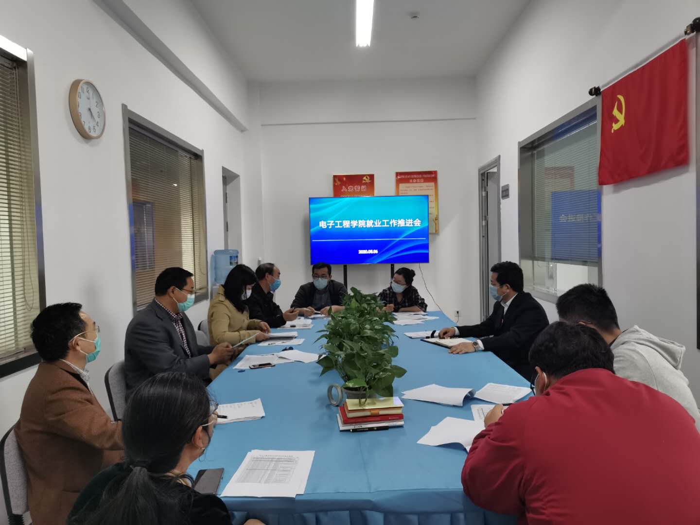 为进一步落实对2020届毕业生就业的精准指导,细化帮扶措施,5月6日下午,电子工程学院在电子楼使命社召开2020届毕业生就业工作推进会。院党委书记马志同、副书记张玲,各毕业班班主任、辅导员参加会议,特邀2019年校优秀班主任武红军老师分享就业工作经验。会议由院党委副书记张玲主持。