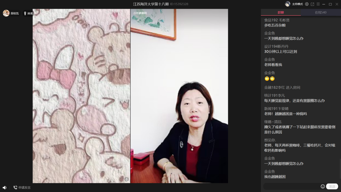 5月6日下午,我校第十八期蓝色大讲堂云端开讲。《小芳健康网》主持人王小芳携医学博士卢姗通过网络云端向我校800余名学生宣讲健康饮食及养生知识。