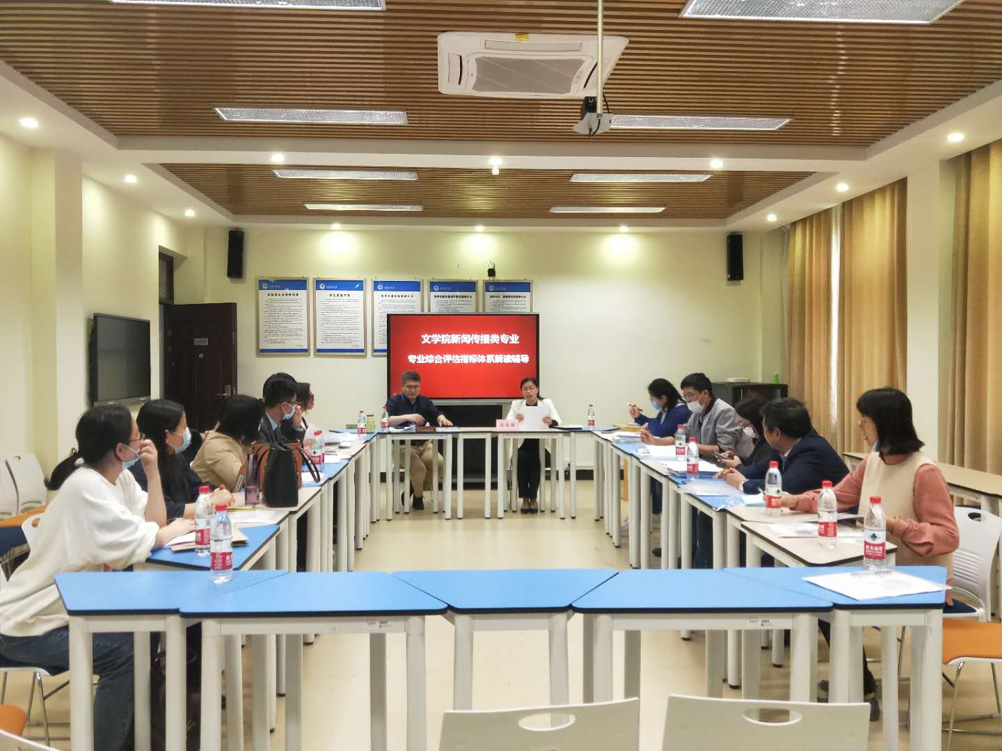 根据江苏省教育评估院年度工作安排,我校文学院新闻传播类专业今年将接受省级专业综合评估。为准确理解评估指标体系,积极做好迎评工作,5月13日下午,文学院邀请教学质量管理处处长安俊丽来院指导,解读江苏省专业综合评估指标体系。会议由文学院院长吴明忠主持,教学质量管理处质量科科长李华和文学院新闻系、广告系全体教师参加会议。