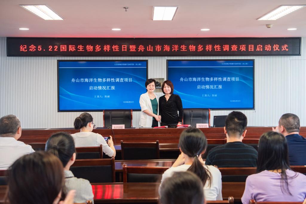 5月20日,在第27个国际生物多样性日到来之即,我校江苏省海洋资源开发研究院院长陈丽与舟山市生态环境局局长张锦于舟山市生态环境局签订项目合同,正式启动实施省海洋资源开发研究院承担的“舟山市海洋生物多样性调查评估项目”。启动仪式上,陈丽介绍了项目的前期准备、调查内容、实施总体计划、预期成果等情况。