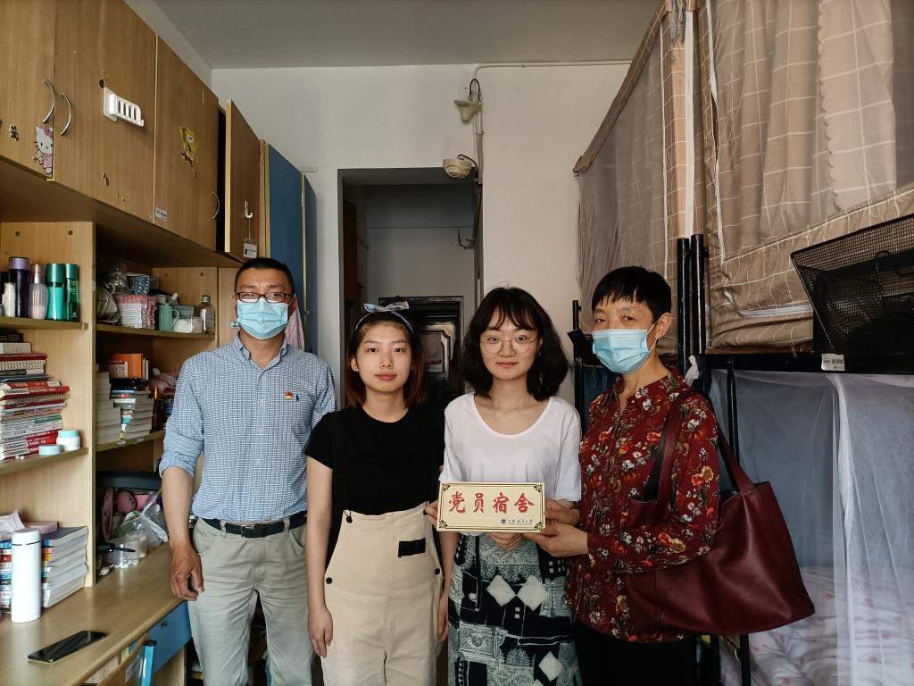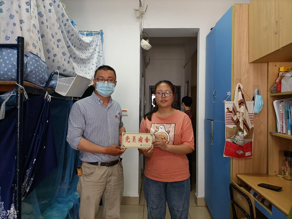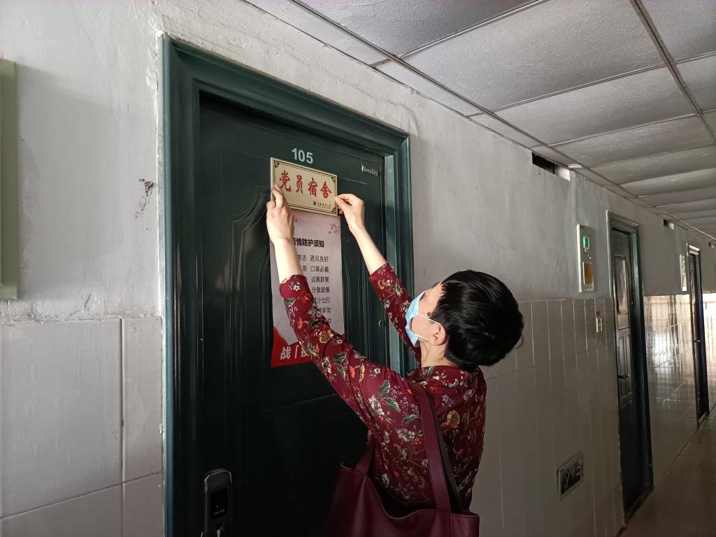 杨天华亲自走访党员宿舍与学生党员对话交流,详细了解他们在校生活、学习情况,勉励他们时刻不忘党员身份,带头维护好宿舍环境。她说当前正值连云港市创建文明城市的关键期,学生党员应该切实发挥党员先锋模范作用,促进“文明宿舍”建设,熟悉城市创文应知应会内容,为其他同学做好表率。杨天华还亲自发放了“党员宿舍”标牌,现场张贴党员宿舍标牌。