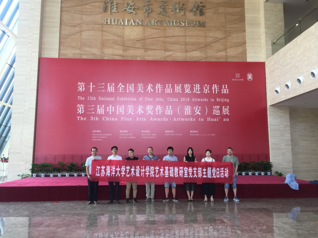 8月12日,艺术设计学院艺术基础教研室党支部全体党员及非党员教师赴淮安美术馆,开展“学优秀作品,树精品意识”主题党日活动。观看由文化和旅游部、中国文联、中国美协主办的“第十三届全国美展进京作品展”、“第三届中国美术奖作品(淮安)巡展”作品。