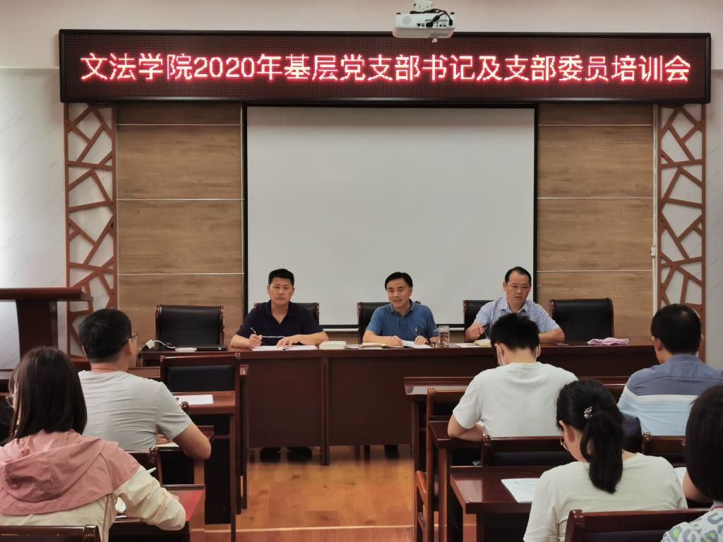 9月16日下午,文法学院在文渊楼308会议举行基层党支部书记及支部委员培训会议,院党委书记吴价宝、副书记王国银和学院全体基层党支部书记及支部委员参加,会议由王国银主持。