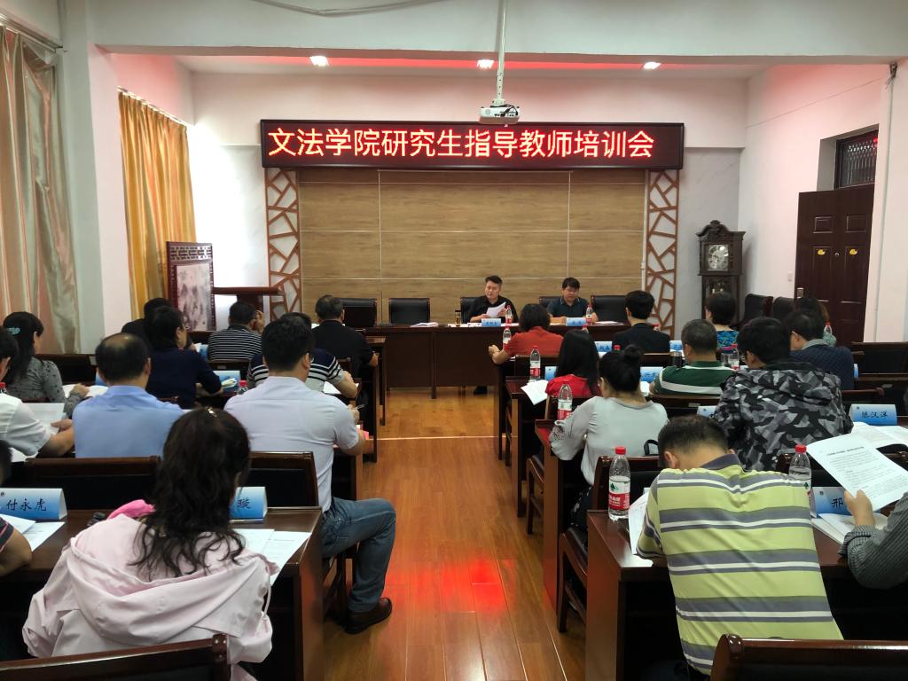 为进一步加强研究生导师队伍建设,提高研究生培养质量,全面落实研究生导师立德树人职责,根据学校研究生处的统一要求,9月23日下午,文法学院在文渊楼308会议室对中国语言文学学术型硕士研究生导师、公共管理MPA专业硕士研究生导师共30名校内导师进行集中培训。会议由文法学院副院长唐浩主持。