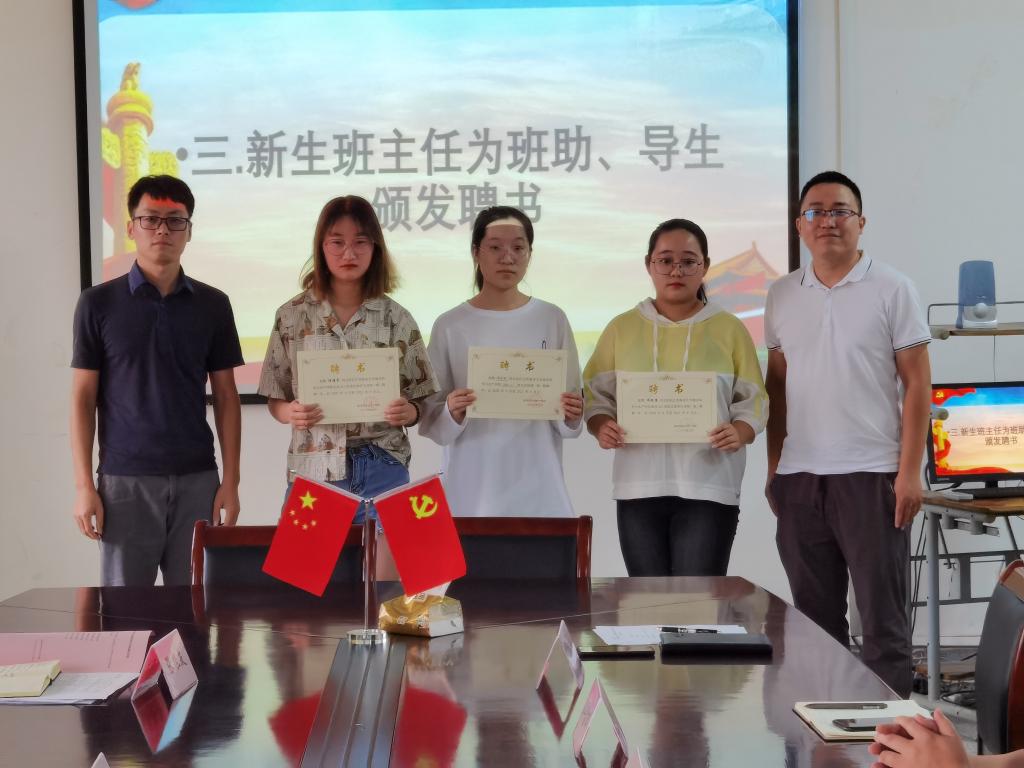 会上,张根友宣读了《关于聘任海洋科学与水产学院2020级新生班主任助理的决定》,唐振新宣读了新生班级支部导生的聘任决定,各新生班主任为新生班助、导生颁发聘书并合影留念,张根友对迎新工作进行了详细的布置,与会人员就工作安排过程中的一些环节进行了沟通和协调。